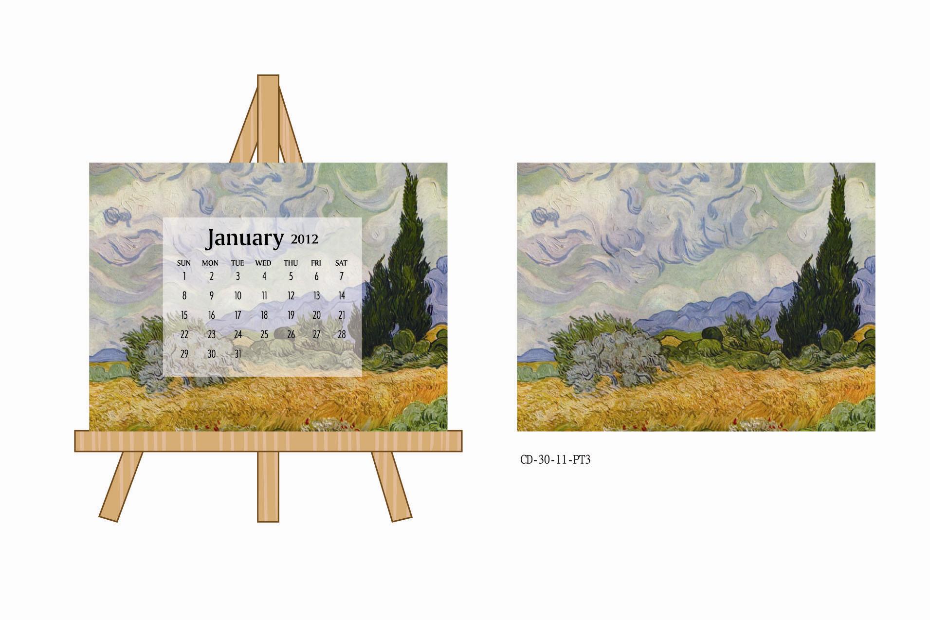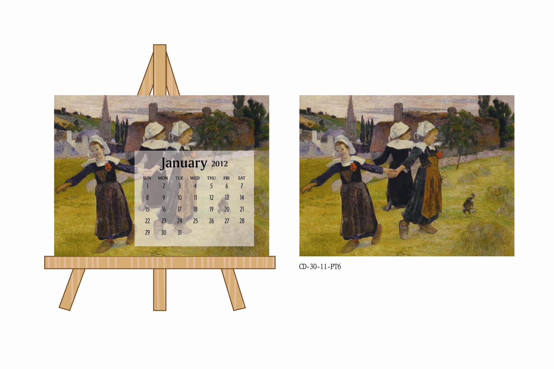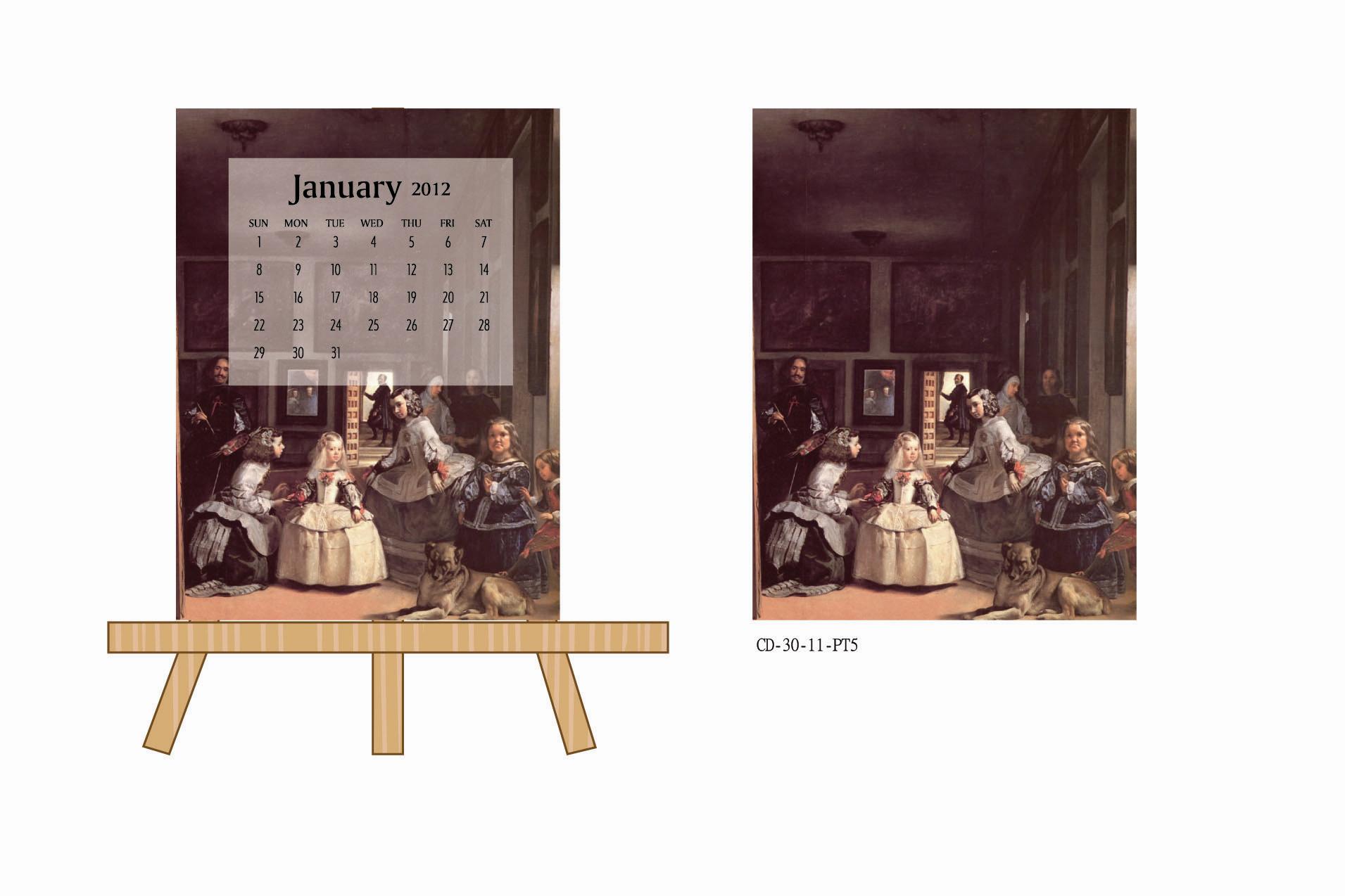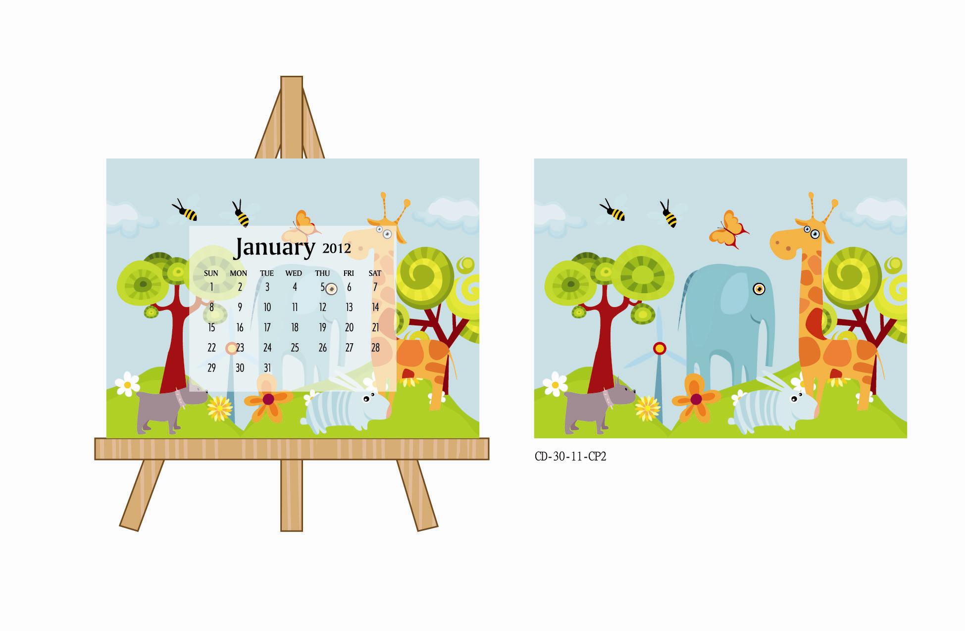Canvas, canvas + cardboard. Calendar: plastic board. Easel: wood. Canvas: 180 x 135 x 3.5mm. Calendar: 100 x 80mm. Easel: 185 x 215mm. 2 pins for hold the calendar.